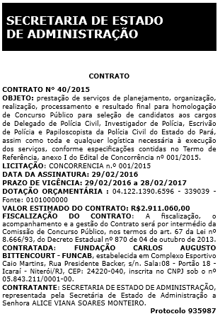 [PUBLICADO 11/03/2016] Concurso PC PA: organizadora definida. Edital em breve!