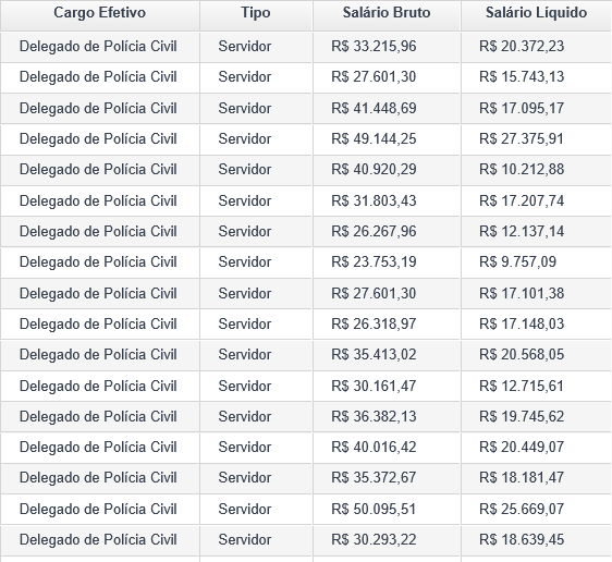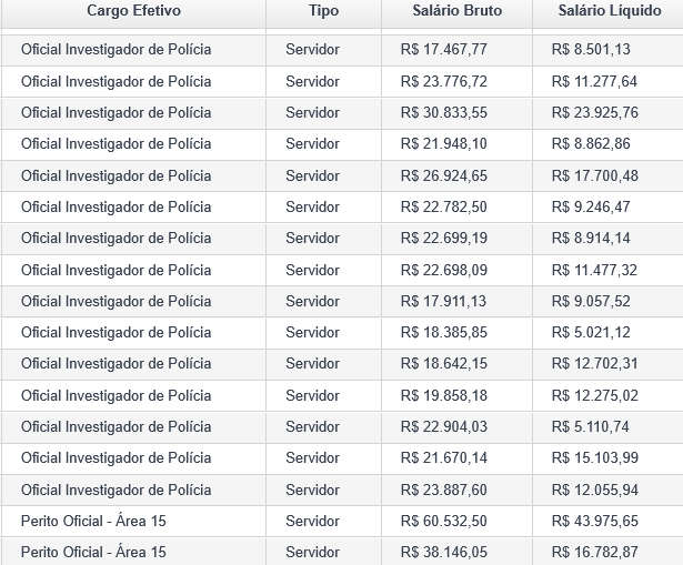 Abaixo você pode conferir as remunerações reais dos aprovados no concurso PC TO, conforme dados obtidos no Portal da Transparência da corporação: