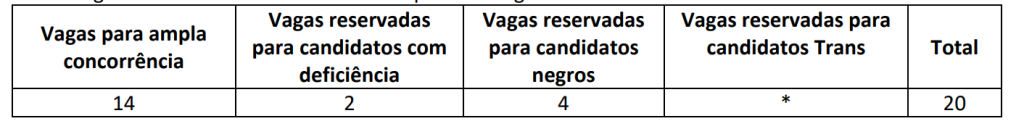 São ofertadas 20 vagas para Analista – área jurídica, cargo de nível superior, que conta com inicial de R$ 5.325,66.