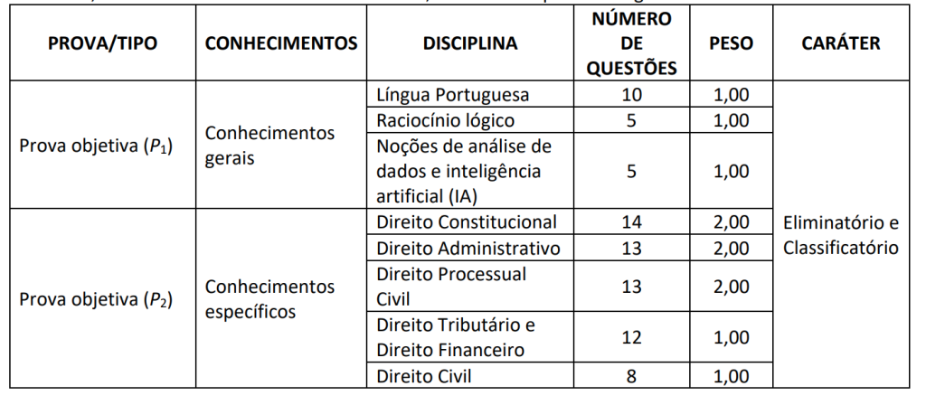 A prova objetiva será composta por 80 (oitenta) questões de múltipla escolha, com 4 (quatro) alternativas cada, havendo somente uma opção correta.