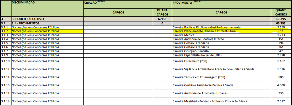- Total de provimentos autorizados: 65.395 cargos (incluindo nomeações, contratações e funções comissionadas);
