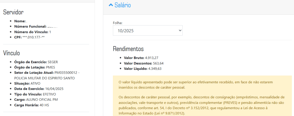 De acordo com os dados disponíveis no Portal da Transparência do Espírito Santo, abaixo você verifica os cargos da Polícia Militar do Estado e suas respectivas remunerações iniciais e finais.