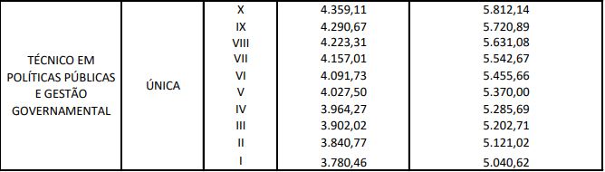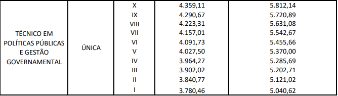 - Salário máximo: R$ 5.040,62 (Padrão X)