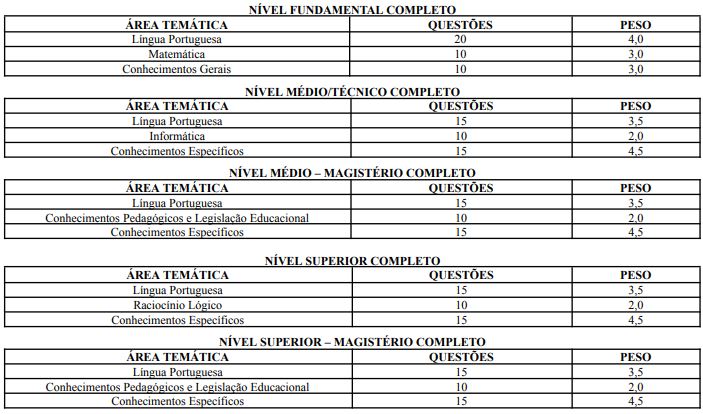- Prova objetiva para todos os cargos (eliminatório e classificatório);
