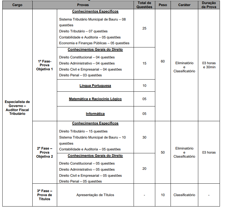 - Prova objetiva para todos os cargos (eliminatório e classificatório);