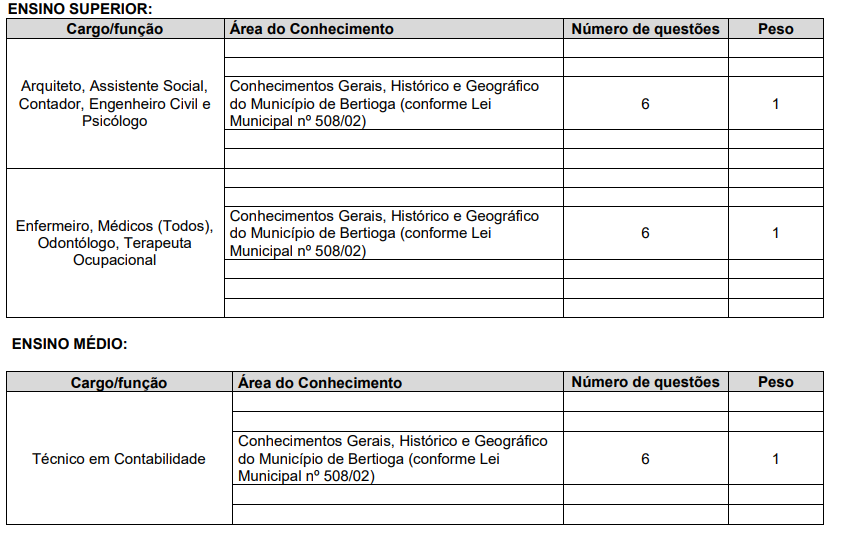 | Médico do Trabalho | Superior | 5.580,54 | 02 |