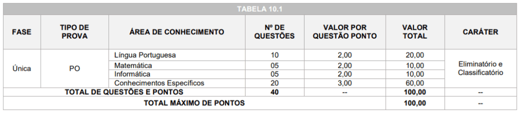 O candidato deve obter nota igual ou superior a 50 pontos, numa escala de 0 a 100 pontos, do total das áreas de conhecimento da prova objetiva, para ser considerado aprovado.