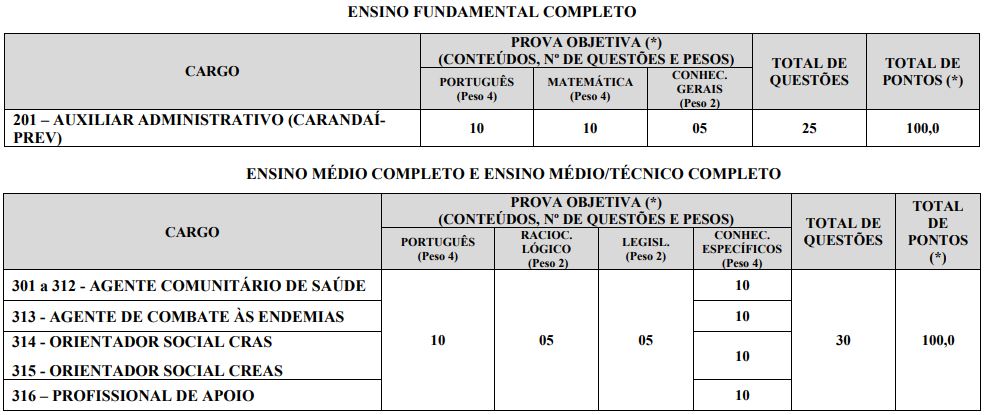 | Auxiliar Administrativo (CARANDAÍ-PREV) | 01 | R$ 2.017,20 |
