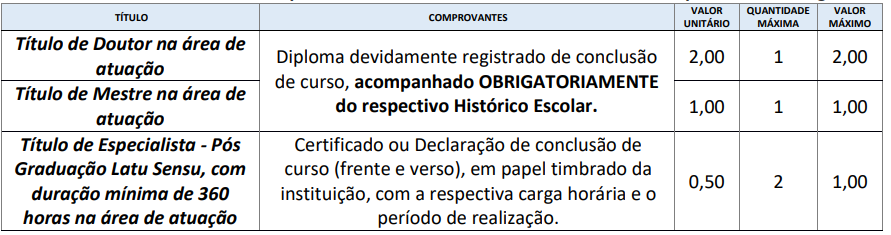 Pontuação adicional com base na formação acadêmica comprovadamente compatível com as atribuições do cargo: