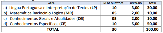 • Prova objetiva para todos os cargos (eliminatório e classificatório);