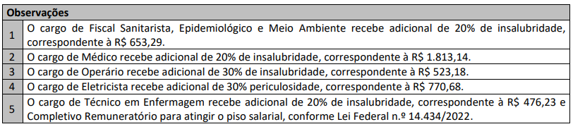 Vale ressaltar que todos os cargos receberão vale-alimentação no valor de R$200 e os seguintes acréscimos abaixo: