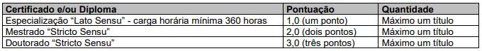 Serão considerados para a Prova de Títulos, sendo que a soma total dos títulos não poderá ultrapassar 06 pontos.