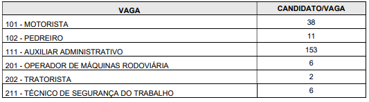No total, 216 candidatos se inscreveram para disputar as seis vagas ofertadas para cargos de níveis fundamental e médio.