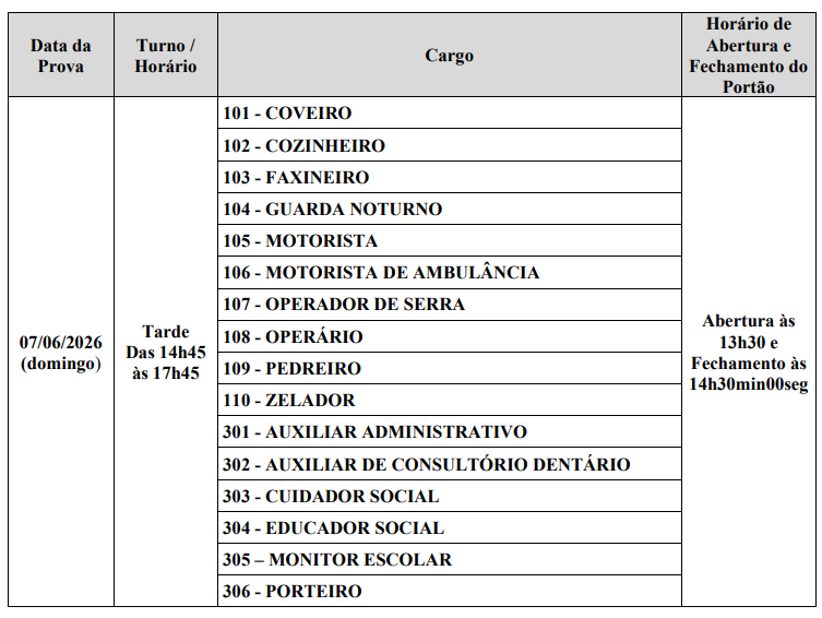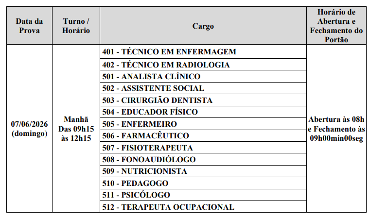 Posteriormente, os candidatos devidamente inscritos serão avaliados por meio de prova objetiva, prevista para o dia 7 de junho. Para cargos de nível superior, haverá também etapa de prova de títulos.