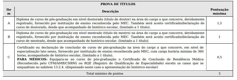 O concurso Joinville terá prova de títulos, de caráter classificatório, aplicada aos cargos de nível superior de formação.