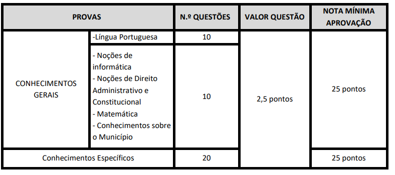 - Prova objetiva para todos os cargos (eliminatório e classificatório); e