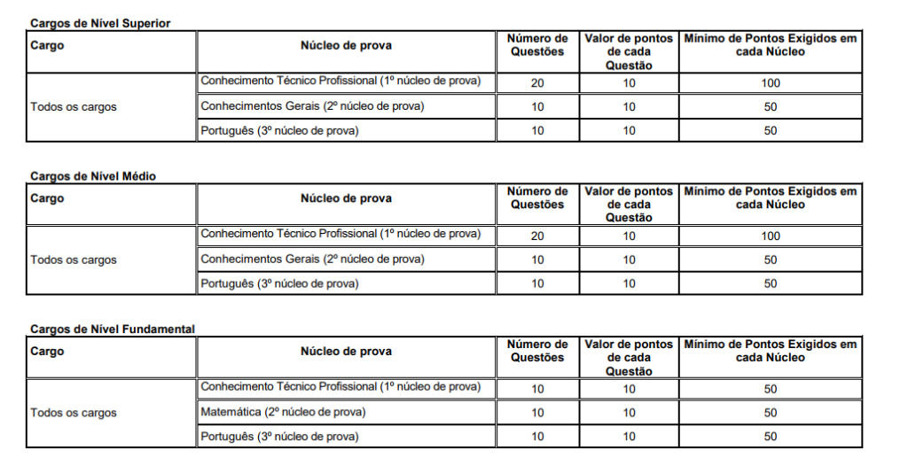 Confira logo abaixo o número de questões, valor de pontos e as disciplinas que foram cobradas: