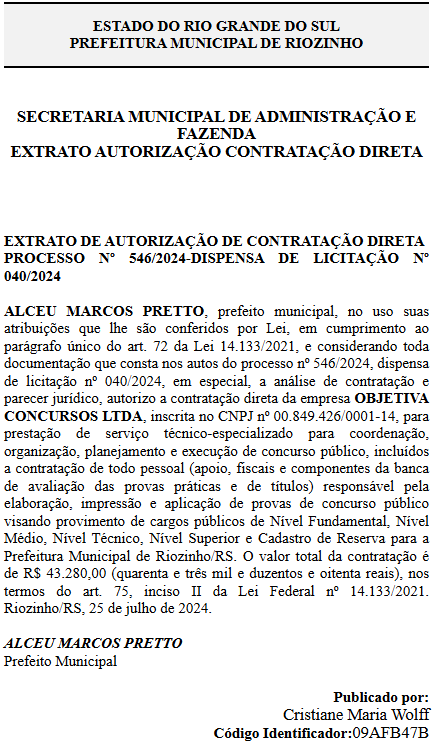 Concurso Riozinho: banca contratada!