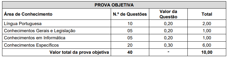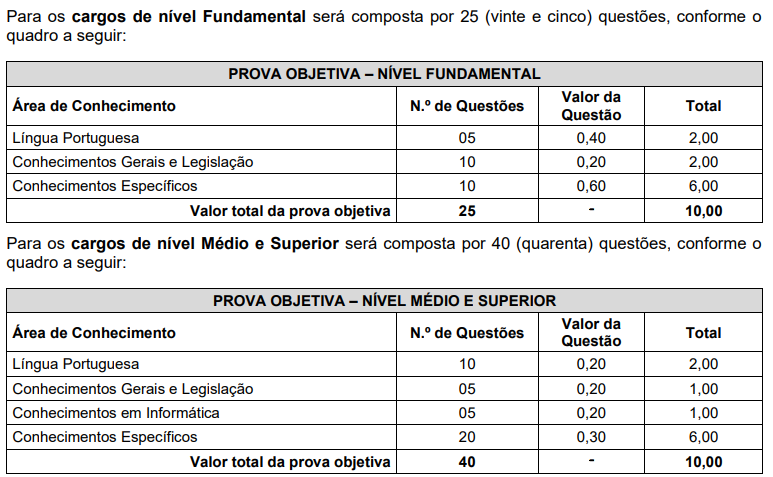 - Prova Objetiva de caráter eliminatório e classificatório para todos os cargos;