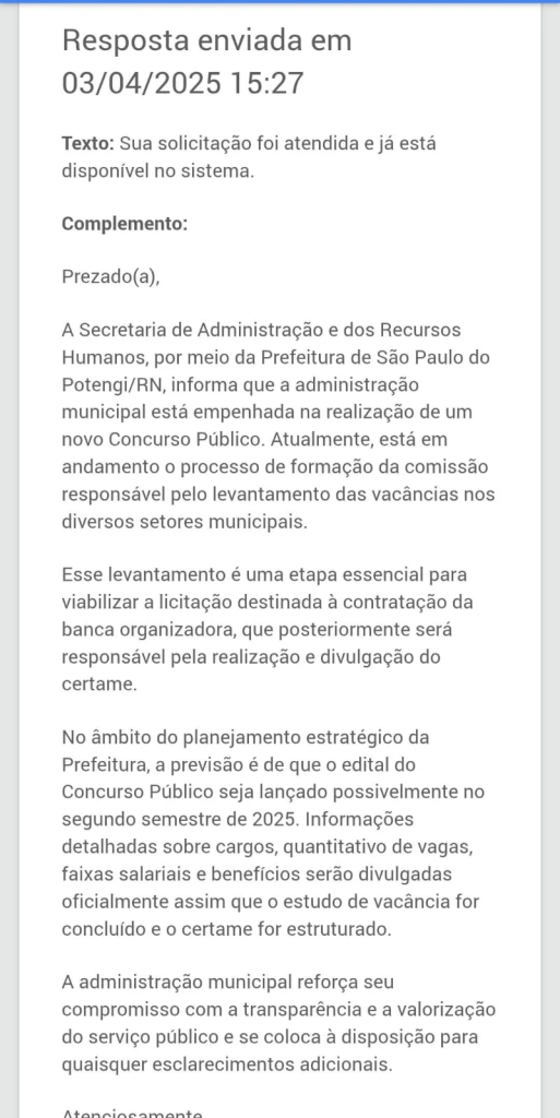 Informações do concurso São Paulo do Potengi