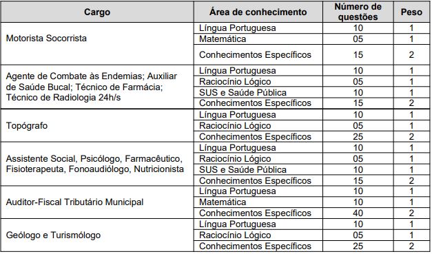 | Agente de Combate às Endemias | 03 + CR | Ensino médio completo / 40h semanais | 3.245,18 + 470,00 (abono) |