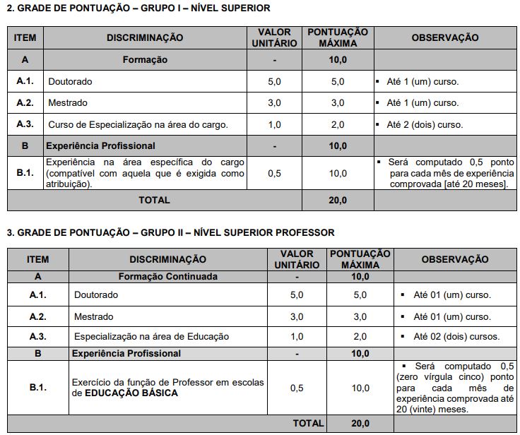 - Prova de Títulos para os cargos de Nível Superior (classificatório);