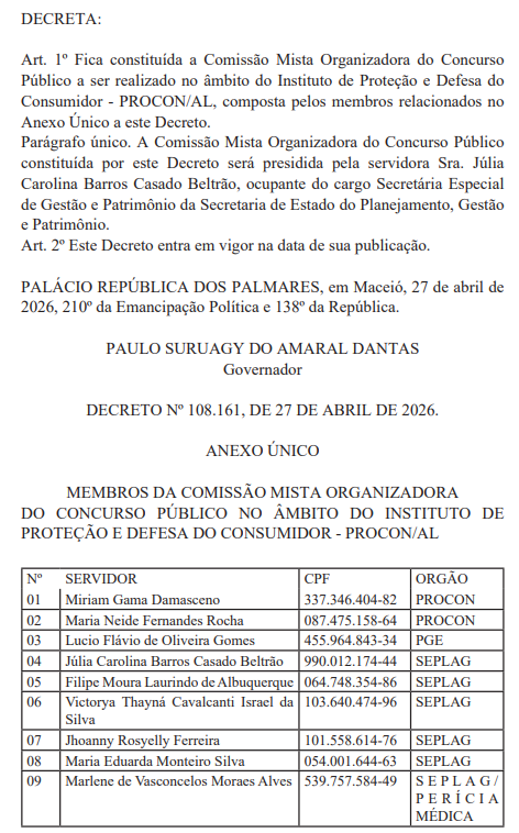 Novidade no radar! O Concurso Procon AL (Instituto de Proteção e Defesa do Consumidor de Alagoas) avançou mais uma etapa com a formação de uma nova comissão organizadora.