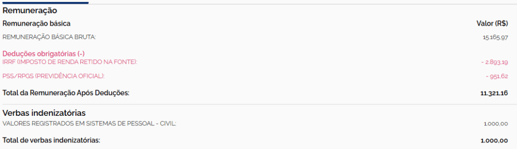 Para exemplificar ainda melhor, trouxemos abaixo o valor real recebido por servidores admitidos no último concurso (2022). Conforme o detalhamento, o salário após os descontos obrigatórios é de R$ 11,3 mil para Analista e R$ 20 mil para Auditor: