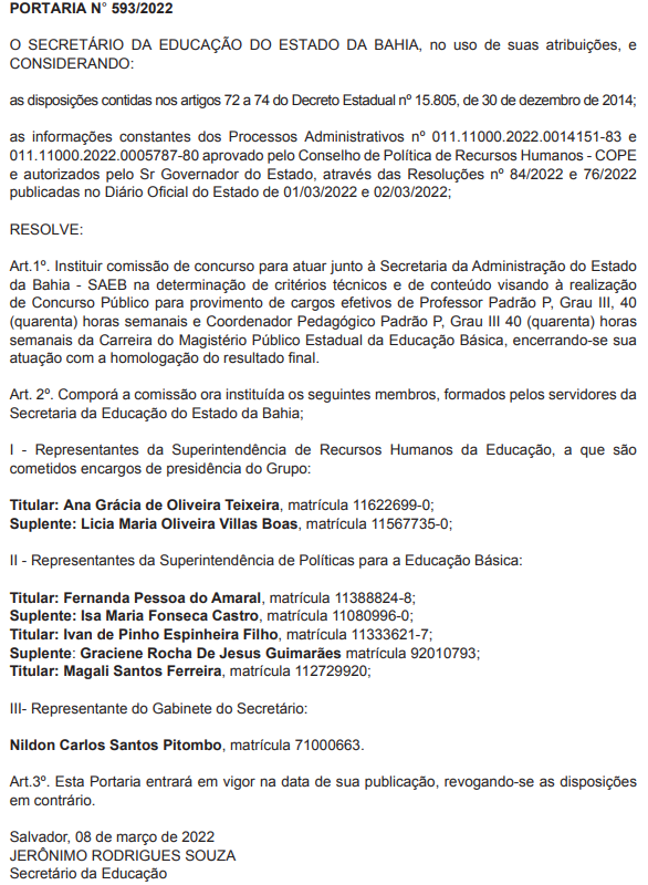 É importante relembrar que a realização do certame já era prevista na Lei Orçamentária Anual (LOA) da Bahia para 2022. Inclusive, na época, uma comissão organizadora chegou a ser formada.