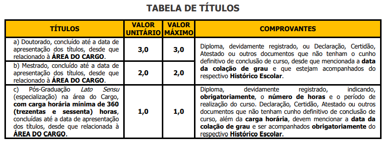 A pontuação da documentação de Títulos se limitará ao valor de 6,0 (seis) pontos.