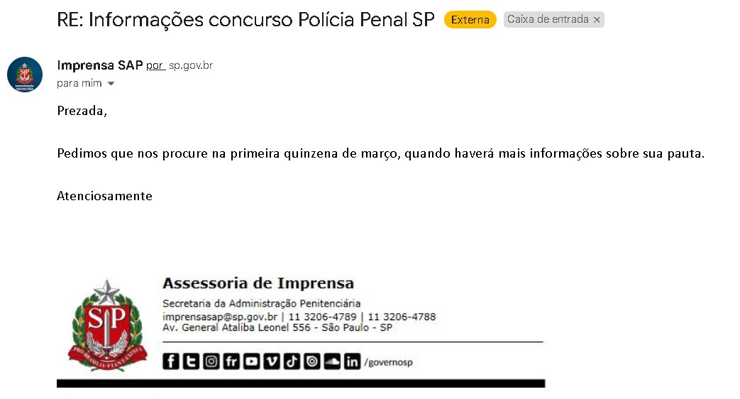 Além disso, em contato com a assessoria de imprensa da Secretaria de Administração Penitenciária (SAP SP), obtivemos a resposta que mais detalhes serão repassados na primeira quinzena de março.