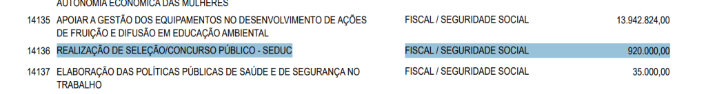 A Lei Orçamentária de 2026 traz a realização de novo concurso público para a Secretaria de Educação.