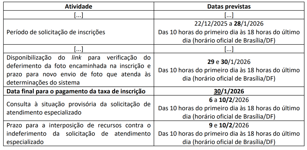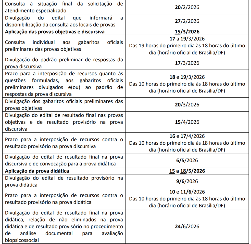 Além disso, o cronograma da seleção foi alterado, modificando também a data de realização das provas que, agora, ocorrerão em 15 de março de 2026.