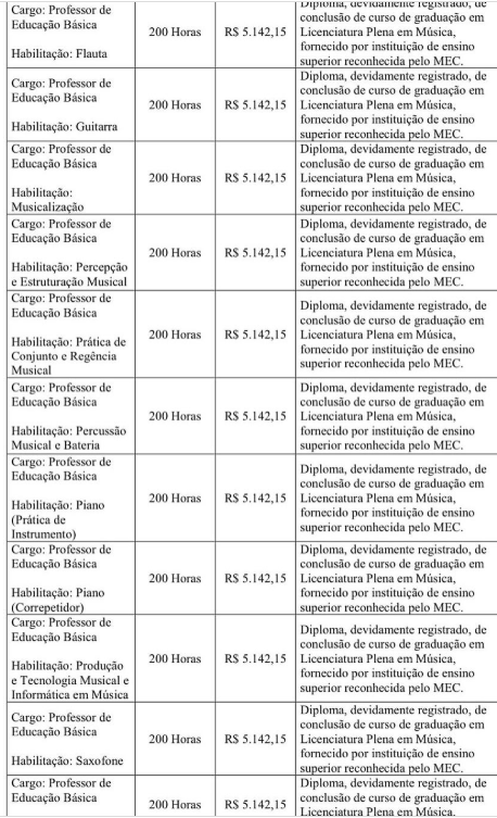 As remunerações vão variar de R$ 2.571,08 (jornada de 100h) a R$ 5.142,15 (jornada de 200h). O certame já conta com comissão formada, tornando apenas a escolha da banca organizadora como pendência para a publicação. As especialidades serão: