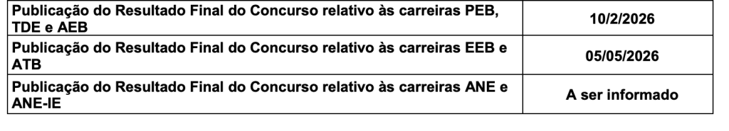 De acordo com as informações, foram homologados os resultados dos cargos: Professor de Educação Básica (PEB), Analista de Educação Básica (AEB) e Técnico da Educação (TDE).
