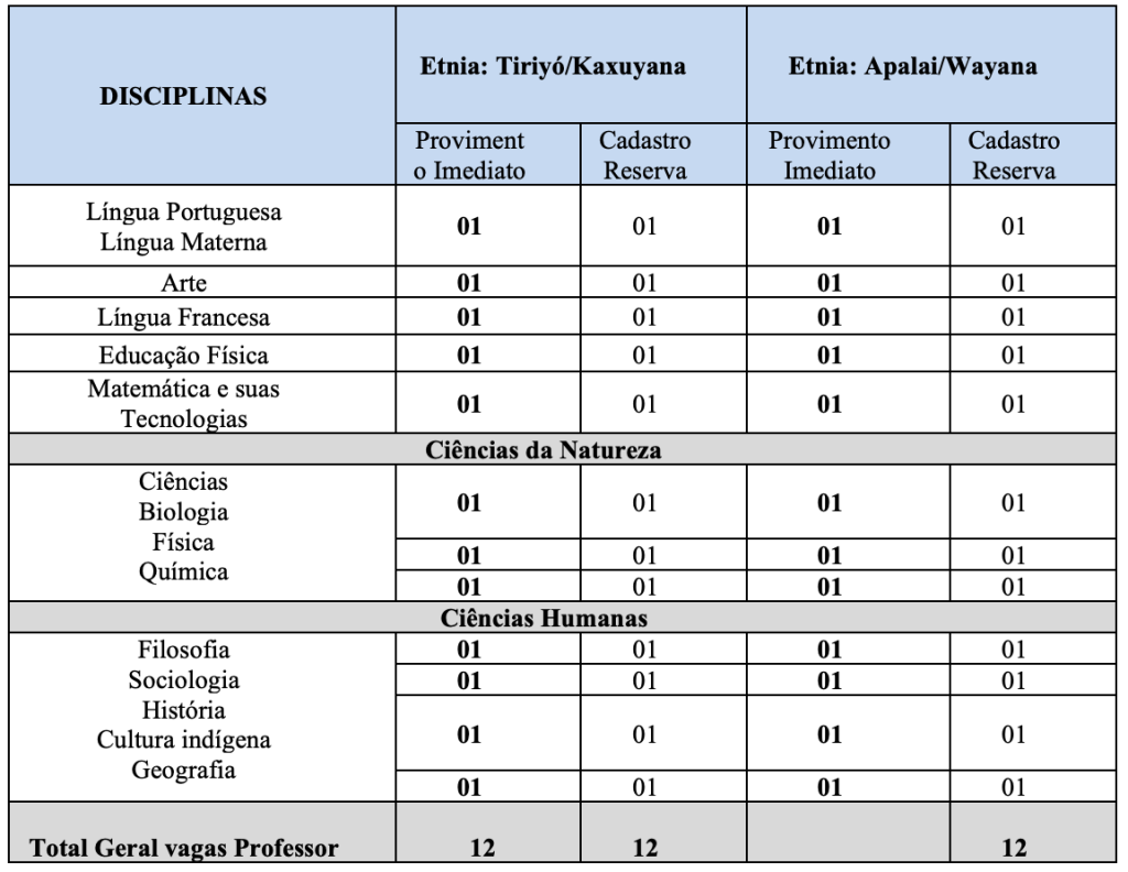 Vagas Concurso Educação Indígena Região Tumucumaque – 24 escolas.