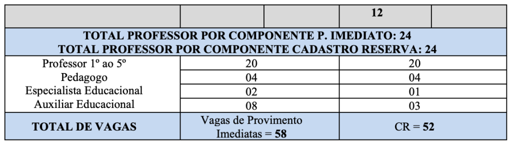 Serão ofertadas vagas para Professor, Pedagogo. Especialista em Educação e Auxiliar Educacional.