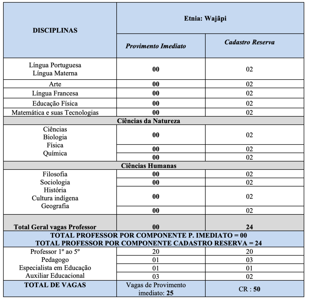 Vagas Concurso Educação Indígena Região do Oiapoque-Terra indígena Uaçá – 22 escolas