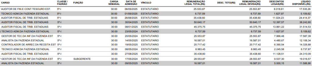 | Analista da Fazenda Estadual | 35 + CR | R$ 12.258,71 |