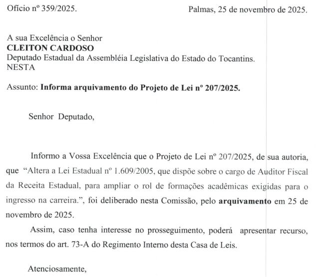 Entretanto, o PL foi arquivado em 25 de novembro pela Comissão de Constituição, Justiça e Redação da Assembleia Legislativa do Tocantins.