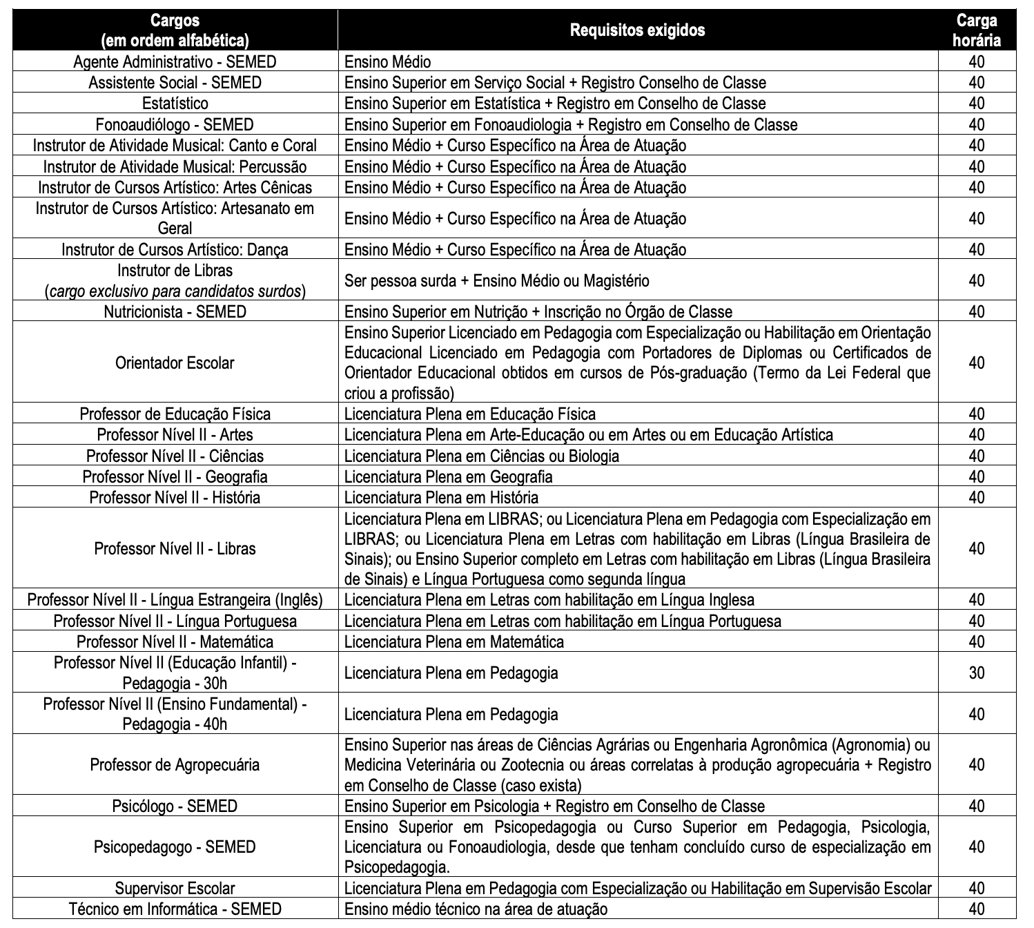 | Professor de Educação Física | 2+10CR | R$ 5.130,63 + grat. escolaridade | 28/6/26 – Tarde |
