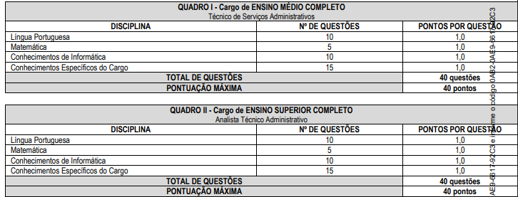 • Cargos: Técnico de Serviços Administrativos e Analista Técnico Administrativo