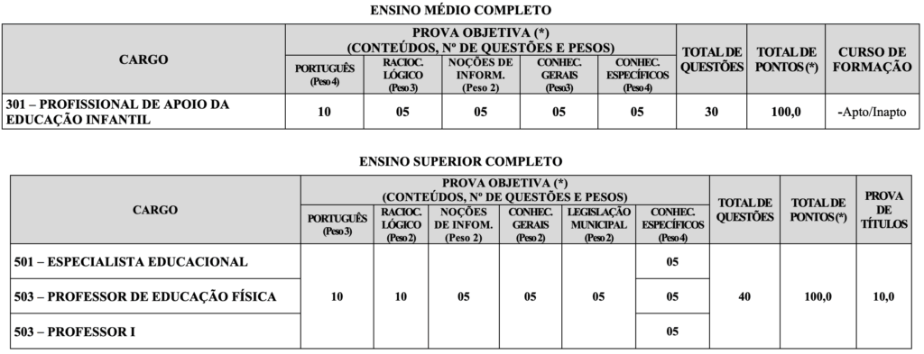 • Prova Escrita Objetiva – caráter eliminatório e classificatório para todos os cargos; e