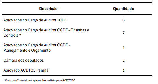 Isso resultou apenas em 42 aprovados efetivos no órgão, diminuindo drasticamente o poder profissional e a suficiência de mão de obra. Veja a tabela: