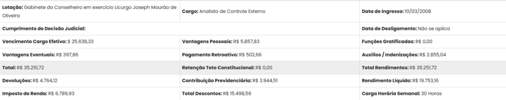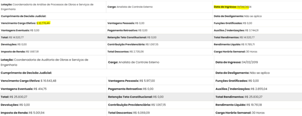 Há servidores que acabaram de ingressar no órgão estadual e já conquistam salário de R$ 10,7 mil, isso sem contar benefícios e gratificações. Veja: