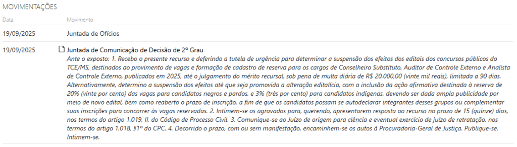 - 01/08/2025: MP recomenda republicação de edital por falta de cotas para negros;
