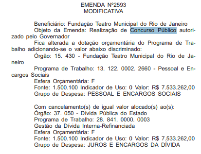 Emenda garante recursos para a viabilização do concurso Theatro Municipal RJ