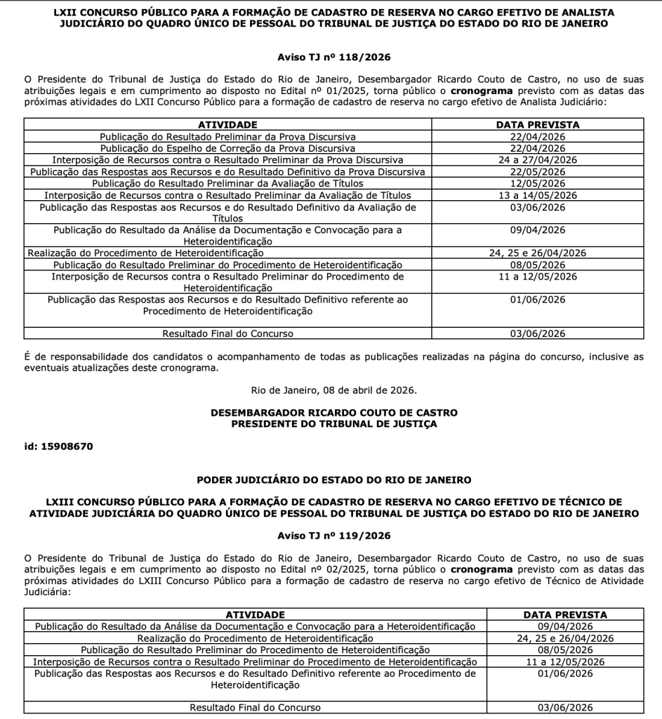 Concurso TJ RJ divulga convocação para heteroidenteficação!