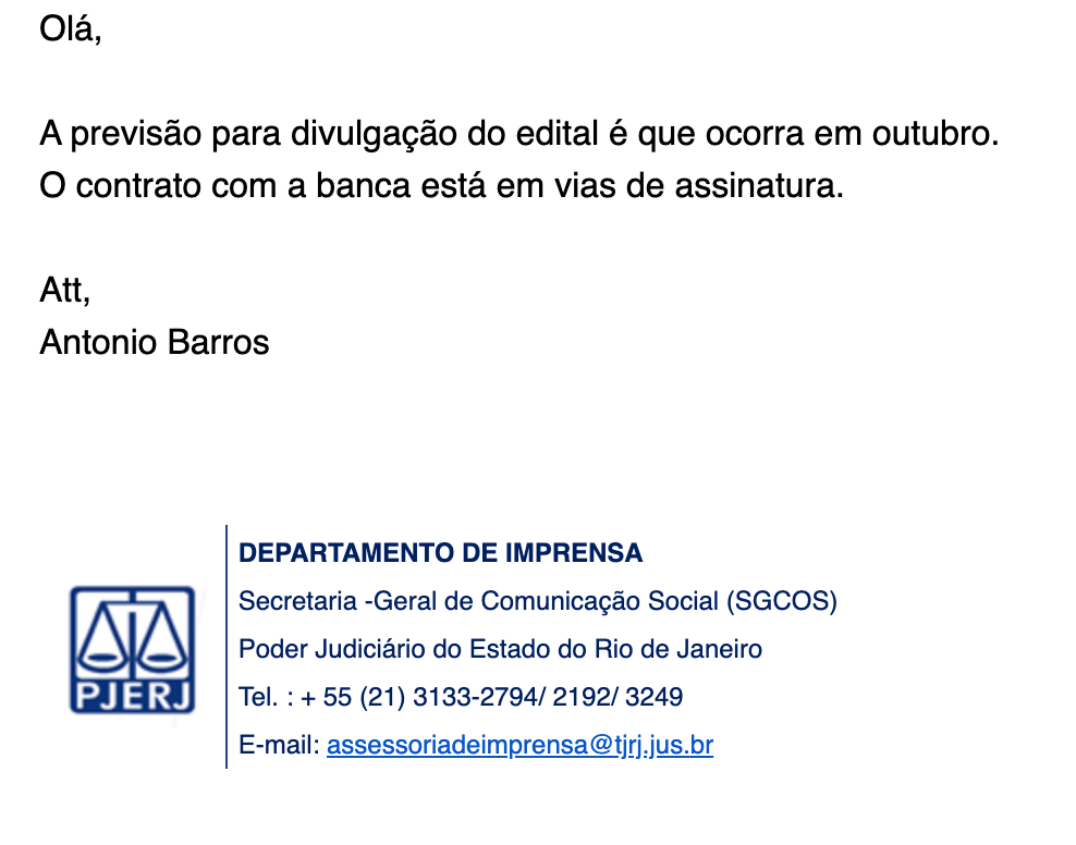 Após a escolha da Fundação Getulio Vargas (FGV) como banca organizadora do novo concurso do Tribunal de Justiça do Rio de Janeiro (TJ RJ), a assessoria de comunicação do órgão informou que a assinatura do contrato está em vias de finalização.