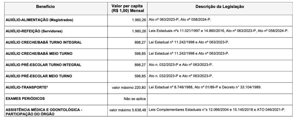 Segundo o plano de carreira dos servidores e magistrados, os benefícios, além dos vencimentos básicos no TJ RS, são os seguintes:
